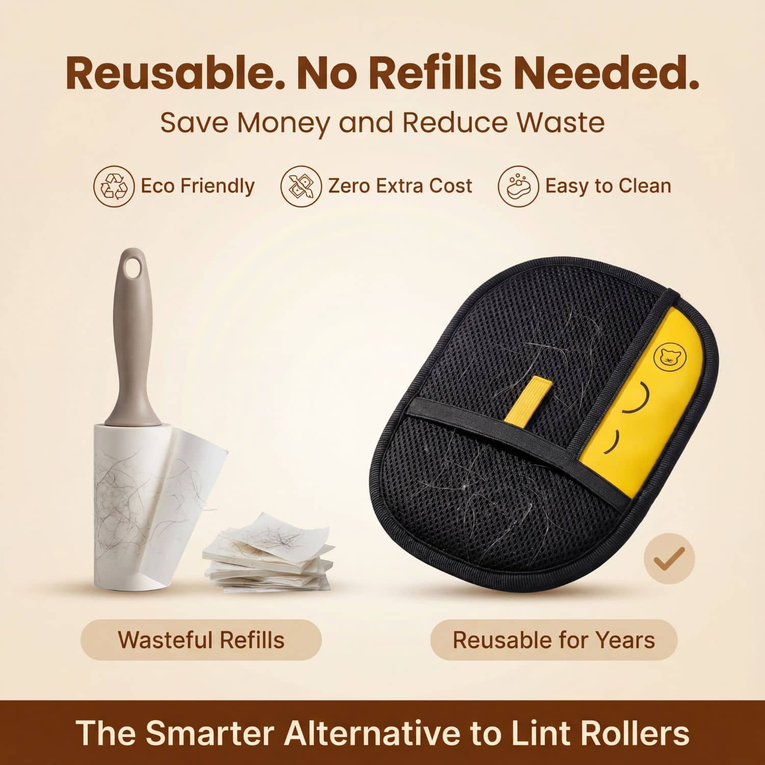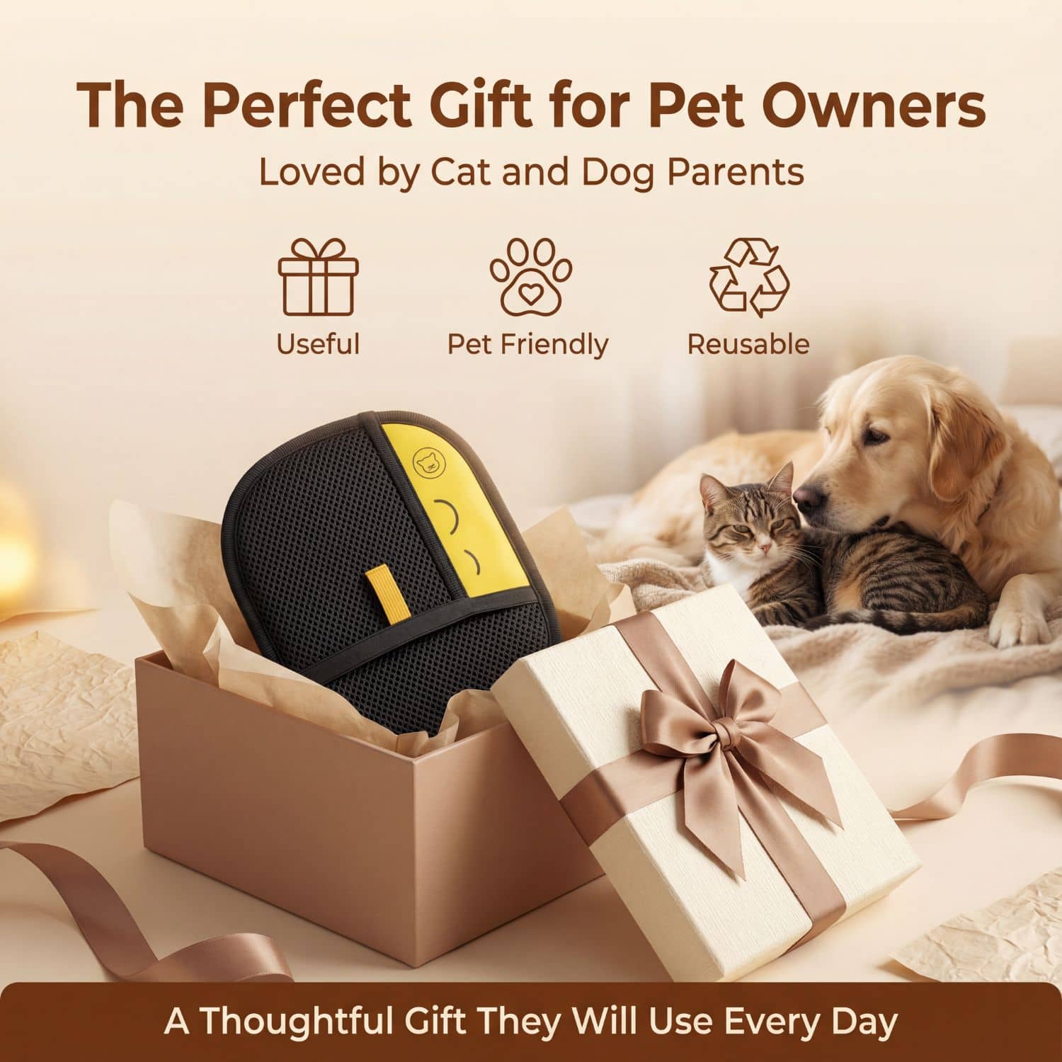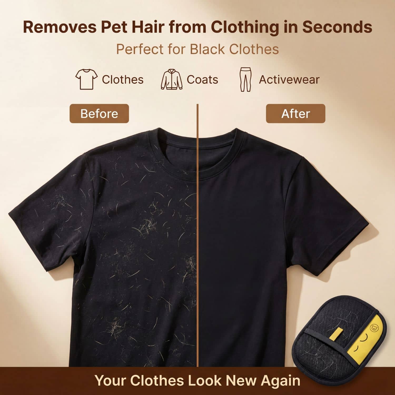 The glove lifts embedded pet hair in seconds on sofas, clothes, car seats, or directly on your pet.